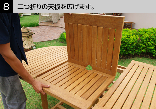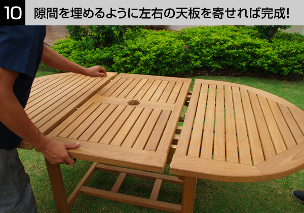 | ウェリントンエクステンションテーブルは土台の足組がしっかりとした、唯一スクエアタイプのエクステンションテーブルです。エクステンションテーブルとは、天板部分を伸ばして大きさを変えることができるテーブルの事で、いつもは4人掛けとして使用しているテーブルがエクステンションする事で、急な来客やホームパーティなどでも、どんなときも楽しい一時をスタートできます。世界最高峰のミャンマー産天然チーク材を使用したクラシックラインは、オールチーク材のガーデンファニチャーです。別名「本チーク」と呼ばれる「ミャンマーチーク」は、優れた耐水性・野外耐久性・耐虫性を持つ品質から世界三大銘木としても数えられ、世界中で建築材・造船材・高級ガーデン家具の材料として使用されています。厳選された天然チークだからこそ味わえる重厚感と、滑らかな肌触りがやさしい最高品質のガーデンテーブルを是非ご堪能ください。 |