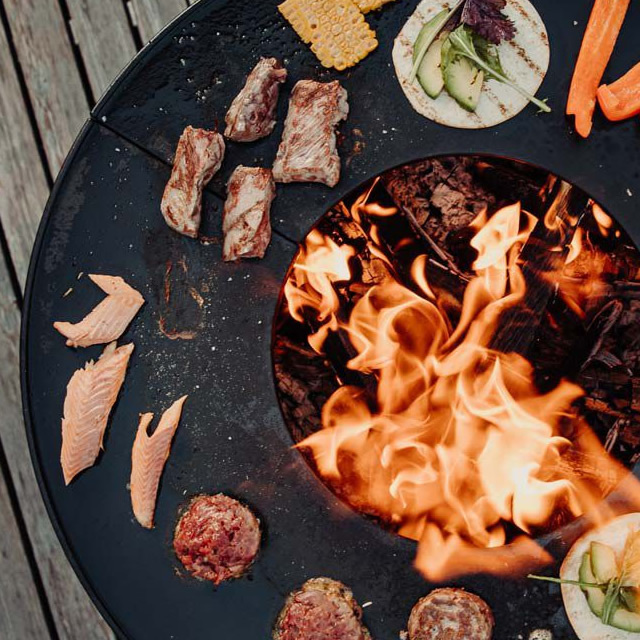炭から出る炎が落ち着き、うっすら白くなってきたら調理開始のタイミング。食材は焦げずに中までよく火が通ります。