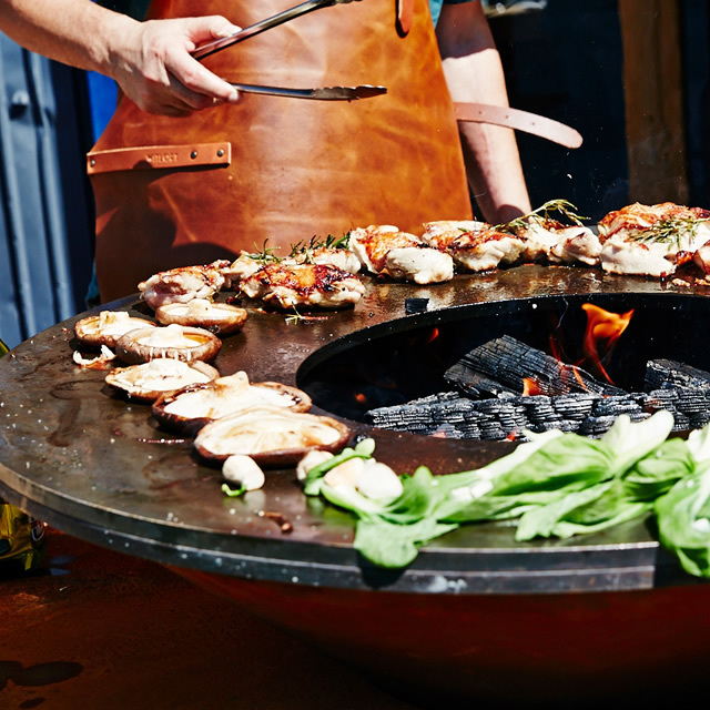 炭から出る炎が落ち着き、うっすら白くなってきたら調理開始のタイミング。食材は焦げずに中までよく火が通ります。