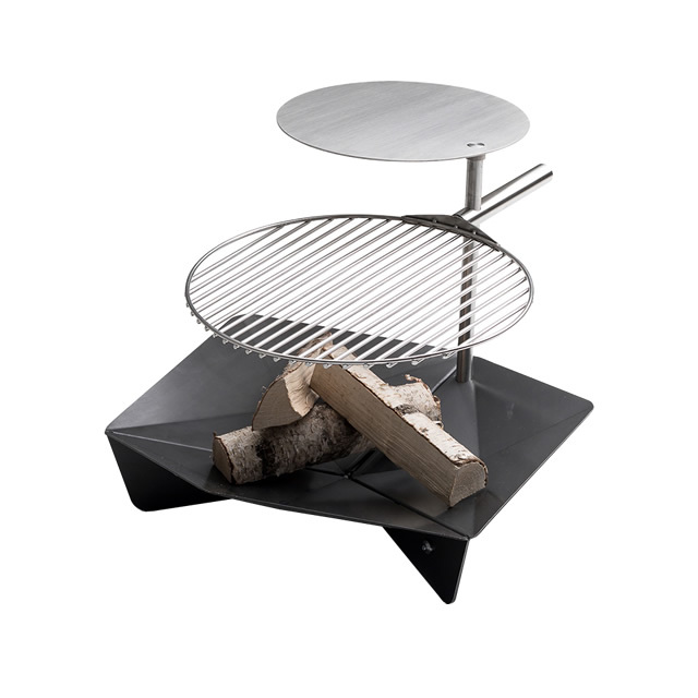 焚き火台としてだけでなく、グリルやテーブルを組み合わせて、バーベキューもこなせます。サイズも3タイプから選べ、ご使用環境によって最適なタイプをご提供。素材はコールテン綱で、時の経過とともに保護錆が出て表面を保護。