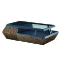 編み込み:人工ウォーターヒアシンス フレーム:アルミニウム 天板:強化ガラス天板 中棚・デザイン部:チーク(ブラックチークオイル仕上げ) |