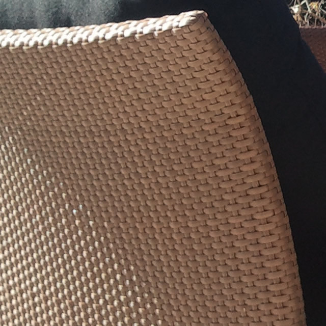 新世代ラタン Durawera® は、耐UV性、耐候性、耐衝撃性に優れ、厳しい屋外環境で年間を通して使用した場合でも経年変化が少なく、天然のラタン(籐)よりも長持ちします。-20℃から70℃と幅広い温度変化にも耐久性を発揮し、寒い日には編み目がつまって硬くなり、暑い日には編み目がゆるくなりますが、気温が安定してくると通常の弾力性に戻ります。同じ高密度ポリエチレンを原料とするものには中国製のものもありますが、劣化が早く、使用1~2年で毛羽立つ傾向があります。ポリ塩化ビニル製の商品も、Durawera®と一見同じような仕上がりですが、紫外線への耐性が弱く、また手触りも硬いです。