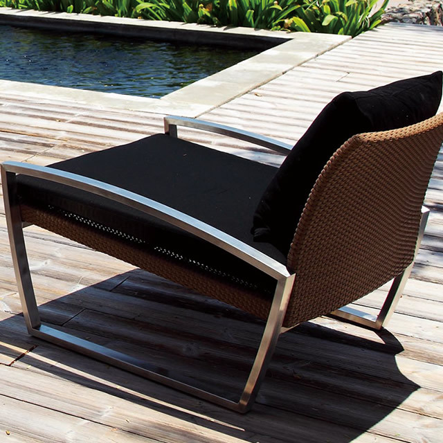 「新世代ラタン Durawera® デュラウェア」は、その耐UV性、耐候性、耐衝撃性から厳しい屋外環境での使用の中でも経年変化が少なく、天然のラタン(籐)よりも長持ちする特性を持ちます。また、この合成繊維は温度変化にも優れた耐久性を発揮し(-20℃から70℃)、年間を通して屋外でお使いいただくことができます。寒い日には編み目がつまり硬くなり、暑い日には編み目がゆるくなりますが、気温が安定してくると通常の弾力性に戻る特性を持ちます。