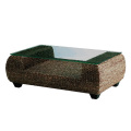 編み込み:人工ウォーターヒアシンス フレーム:アルミニウム 脚:チーク(ブラックチークオイル仕上げ) 天板:強化ガラス天板 |