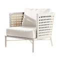 「パリス(PARIS)」のベースとなるアルミフレームはもともと腐食に強いだけでなく粉体塗装を施すことでさらに野外対候性を上げています。クッションはPUフォームに防水ラッピングを施した上に、アウトドア用に開発されたスペイン製 Texsilk®を使用したメンテナンスフリーなガーデン家具に仕上がっています。