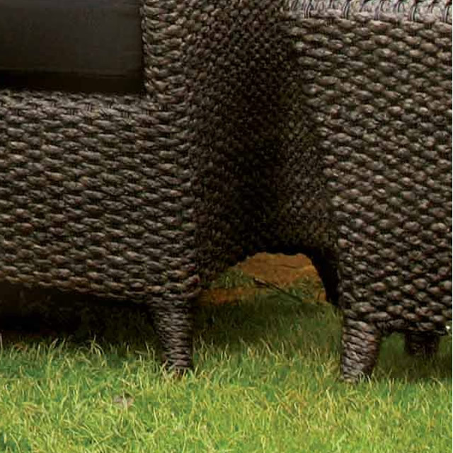 また、ウォーターヒヤシンスのぷっくりとした素材感で表現されるガーデンファニチャーのスタイル自体も個性際立つものです。同じ素材を使ってはいますが、平らなDurawera®を編み込んだものとぷっくりとしたDurawera®ウォーターヒヤシンスを使用したものでは、例え同じデザインのものを作ったとしても表情は全く異なります(写真1・2 参照)。お使いいただくシチュエーションによって、都会的にまとめたいのか、野趣あふれる雰囲気を演出したいのかお考えいただくのも楽しいひとときでしょう。ぜひ実物をショールームでご覧いただいた上でご検討いだきたいです。
