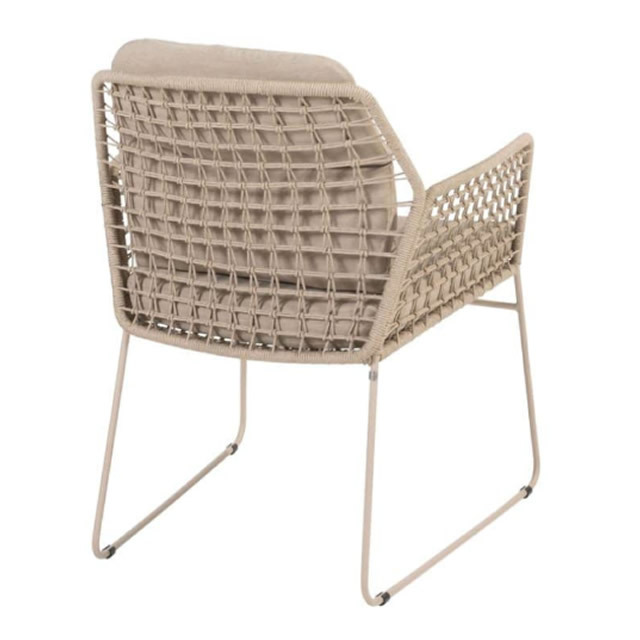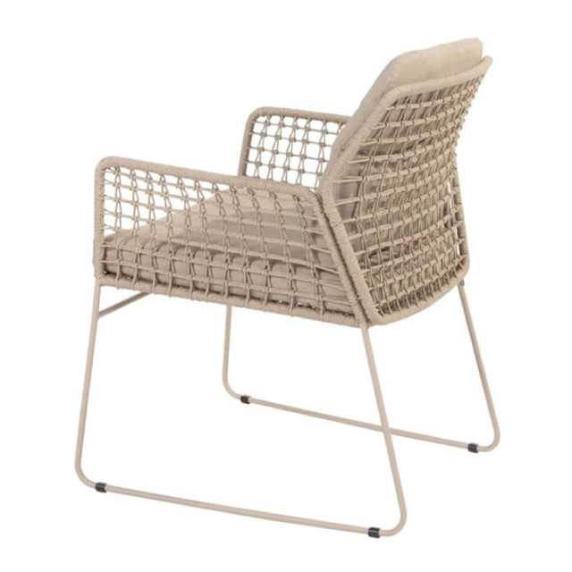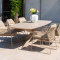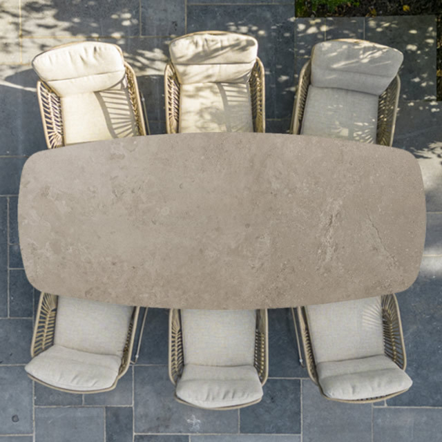ALBANO(アルバーノ)のガーデンチェアーは、背面にもクッションが付属し、包み込まれるようなロープ素材が特徴のガーデンチェアーです。セットなるPRADO(プラド)のセラミックオーバルテーブルは、直径240cmのゆとりの天板でダイニングチェアー6脚で囲むにも十分なサイズのガーデンテーブルです。