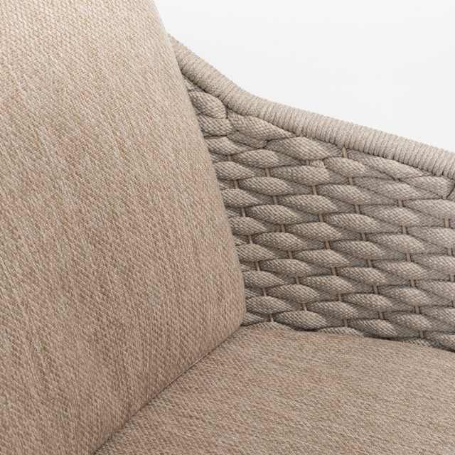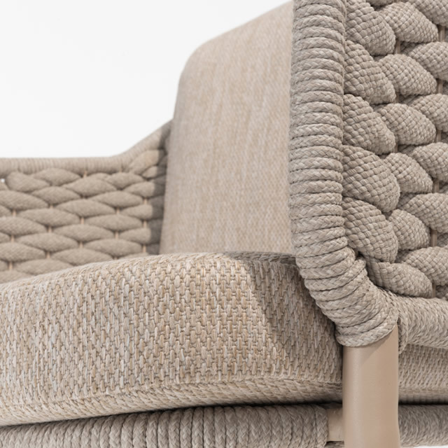 | 素材 | 耐候性ロープ、ステンレスフレーム、チーク、耐候性クッション |