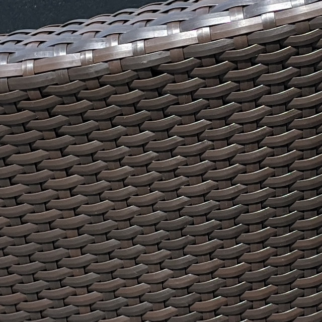 新世代ラタン Durawera® は、耐UV性、耐候性、耐衝撃性に優れ、厳しい屋外環境で年間を通して使用した場合でも経年変化が少なく、天然のラタン(籐)よりも長持ちします。-20℃から70℃と幅広い温度変化にも耐久性を発揮し、寒い日には編み目がつまって硬くなり、暑い日には編み目がゆるくなりますが、気温が安定してくると通常の弾力性に戻ります。同じ高密度ポリエチレンを原料とするものには中国製のものもありますが、劣化が早く、使用1~2年で毛羽立つ傾向があります。ポリ塩化ビニル製の商品も、Durawera®と一見同じような仕上がりですが、紫外線への耐性が弱く、また手触りも硬いです。