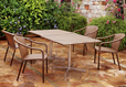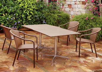 こちらの商品に使用しております新世代ラタンと、ラタンの色と同系色に塗装された足回りのアルミは、デザイン性だけでなく野外耐久性にも優れています。末永くご愛顧いただければ幸いです。