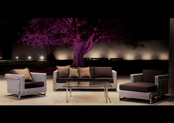 また、ウォーターヒヤシンスのぷっくりとした素材感で表現されるガーデンファニチャーのスタイル自体も個性際立つものです。同じ素材を使ってはいますが、平らなDurawera®を編み込んだものとぷっくりとしたDurawera®ウォーターヒヤシンスを使用したものでは、例え同じデザインのものを作ったとしても表情は全く異なります(写真1・2 参照)。お使いいただくシチュエーションによって、都会的にまとめたいのか、野趣あふれる雰囲気を演出したいのかお考えいただくのも楽しいひとときでしょう。実物をショールームでご覧いただけますので、是非ご来場ください。