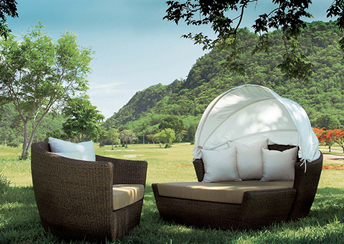 カノエ・幌付リクライニングチェアーとオットマンのウォーターヒアシンスセット