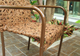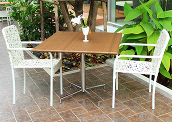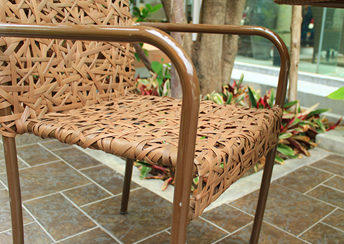 こちらの商品に使用しております新世代ラタンと、ラタンの色と同系色に塗装された足回りのアルミは、デザイン性だけでなく野外耐久性にも優れています。末永くご愛顧いただければ幸いです。
