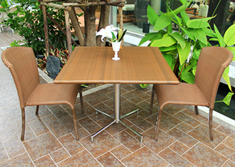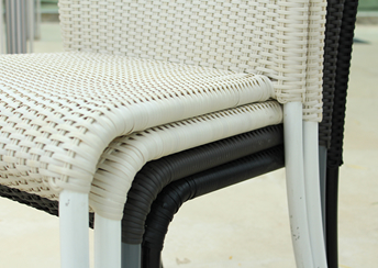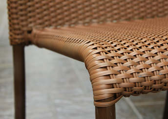 こちらの商品に使用しております新世代ラタンと、ラタンの色と同系色に塗装された足回りのアルミは、デザイン性だけでなく野外耐久性にも優れています。末永くご愛顧いただければ幸いです。