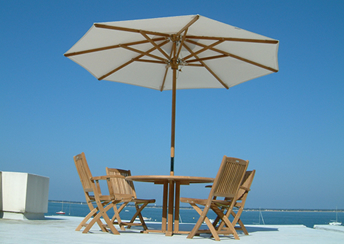本場南国リゾートを体感!パラソル付 最高級チークのガーデンテーブルセット