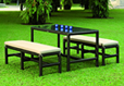 ベンチに2人で座ったり、1人でゆったりくつろいだりチェアーとベンチを組み合わせることで用途が広がりますね。